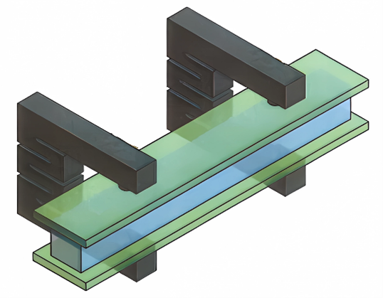 Figure 5. C/C clips in a sandwich arrangement. This design enables load application while bypassing the need for intricate custom fixture. | Image Credit: CFC Design/ACROSS USA