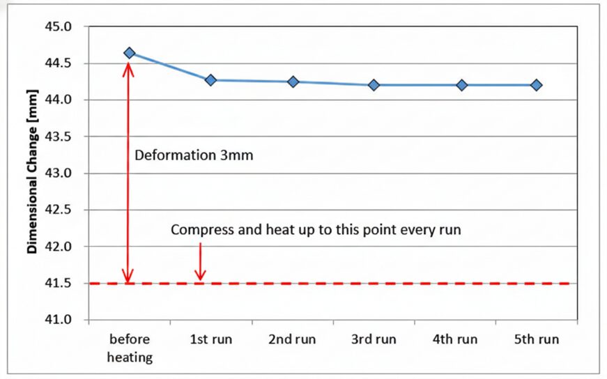 A decrease of about 1% in the natural length was observed only during the first heating run. However, the natural length did not change even if the heating was repeated after, and it was found that there was no setting at all.