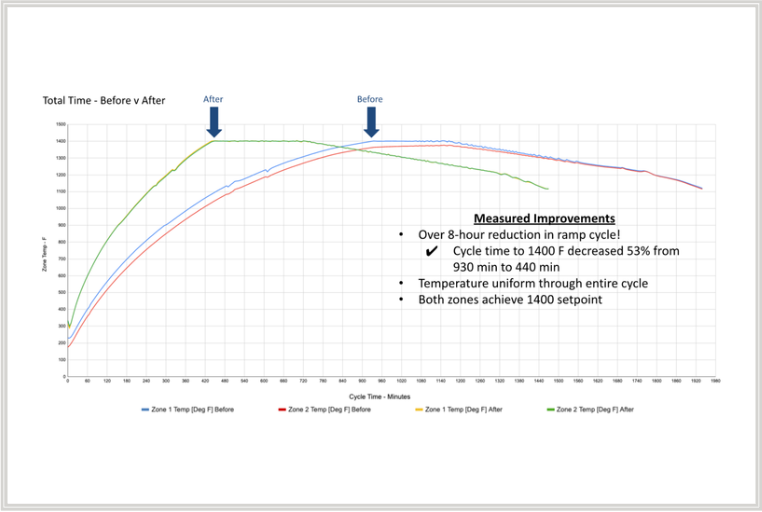 - Reduce total cycle time: By shortening ramp-up time, the furnace could complete more loads per month, increasing throughput.