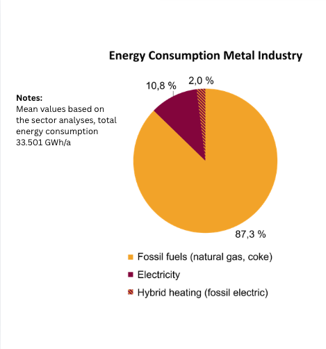 Efforts to mitigate climate change are crucial, particularly in Germany where there is a significant amount of energy-intensive industry, to achieve ambitious climate targets while preserving jobs and international competitiveness. Currently, process heat generation is heavily dependent on the use of fossil fuels, especially natural gas, with a low utilization of renewable energies. Fossil energy sources dominate the metal industry, accounting for 87.3%, while electricity represents 10.8%, and hybrid heating systems make up 2.0%. The mineral industry shows an even stronger dependence, with fossil fuels accounting for 99.7%. These figures illustrate the challenges and potential for technological innovations to provide CO2-free process heat in these sectors.