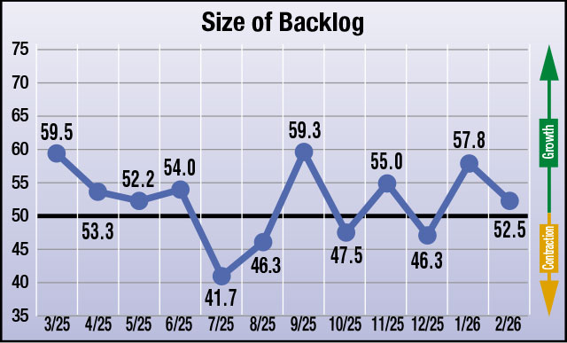 - Anticipated change in Size of Backlog from January to February: 52.5