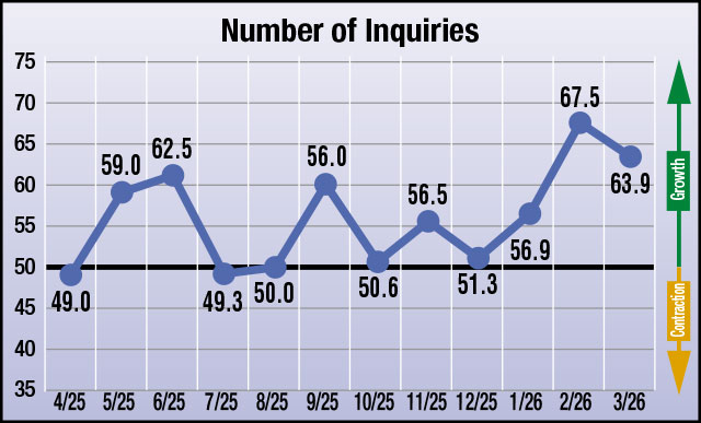 - Anticipated change in Number of Inquiries from February to March: 63.9