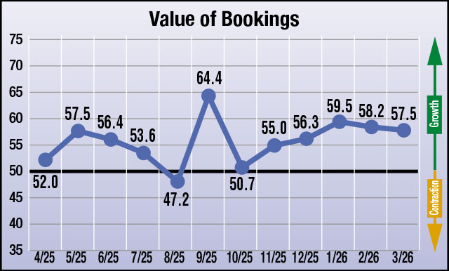 - Anticipated change in Value of Bookings from February to March: 57.5