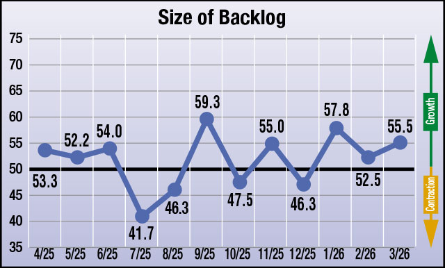 - Anticipated change in Size of Backlog from February to March: 55.5