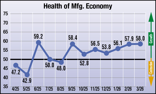 - Anticipated change in Health of the Manufacturing Economy from February to March: 58.0
