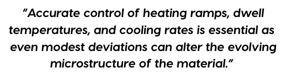 Continuous monitoring and accurate measurement of operating temperatures are therefore essential. Even small deviations in maximum temperature can lead to meaningful differences in crystallinity, density, thermal conductivity, and mechanical behavior. For space applications, where consistency and reliability are paramount, ensuring that each component reaches the intended peak temperature is a defining requirement of high-temperature thermal processing. As space missions continue to demand materials capable of performing in the most extreme environments, advanced heat treatment remains a critical enabler of reliability and innovation.