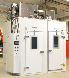 - A natural gas-fired enhanced duty walk-in furnace was recently manufactured for a transportation technology company by Wisconsin Oven Company to be used for heat treating baskets of aluminum parts. The heat-treating equipment has a maximum temperature rating of 600°F (315°C) and has sufficient capacity to heat 1,312 pounds (5,952 kg) of aluminum from 70°F (21°C) to 482°F (250°C) within 120 minutes when loaded into an ambient oven. Wisconsin Oven Company also manufactured a custom electrically heated enhanced duty walk-in oven for an aerospace parts manufacturer to be used for curing composites. The maximum operating temperature of this composite curing oven is 500°F.