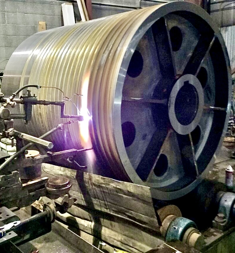 Main image: Matt Geddes, regional operations manager, flame hardening a roll at the Detroit location
