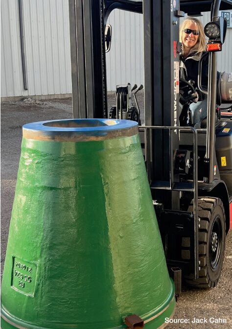 Figure 3. DCI President Linda Williams loading a 3,500-pound pump cyclone for DCT