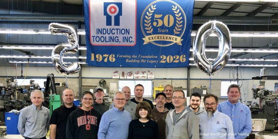 Main image shows Induction Tooling, Inc. celebrating 50 years of innovation and design.